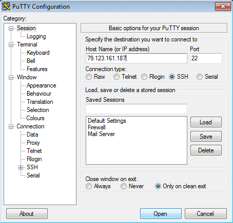 İP adresimizi putty’e (Hos Name kısımna) yazalım örnekteki gibi ve open diyelim