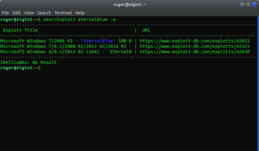 ruger@sigint:~$ searchsploit -h